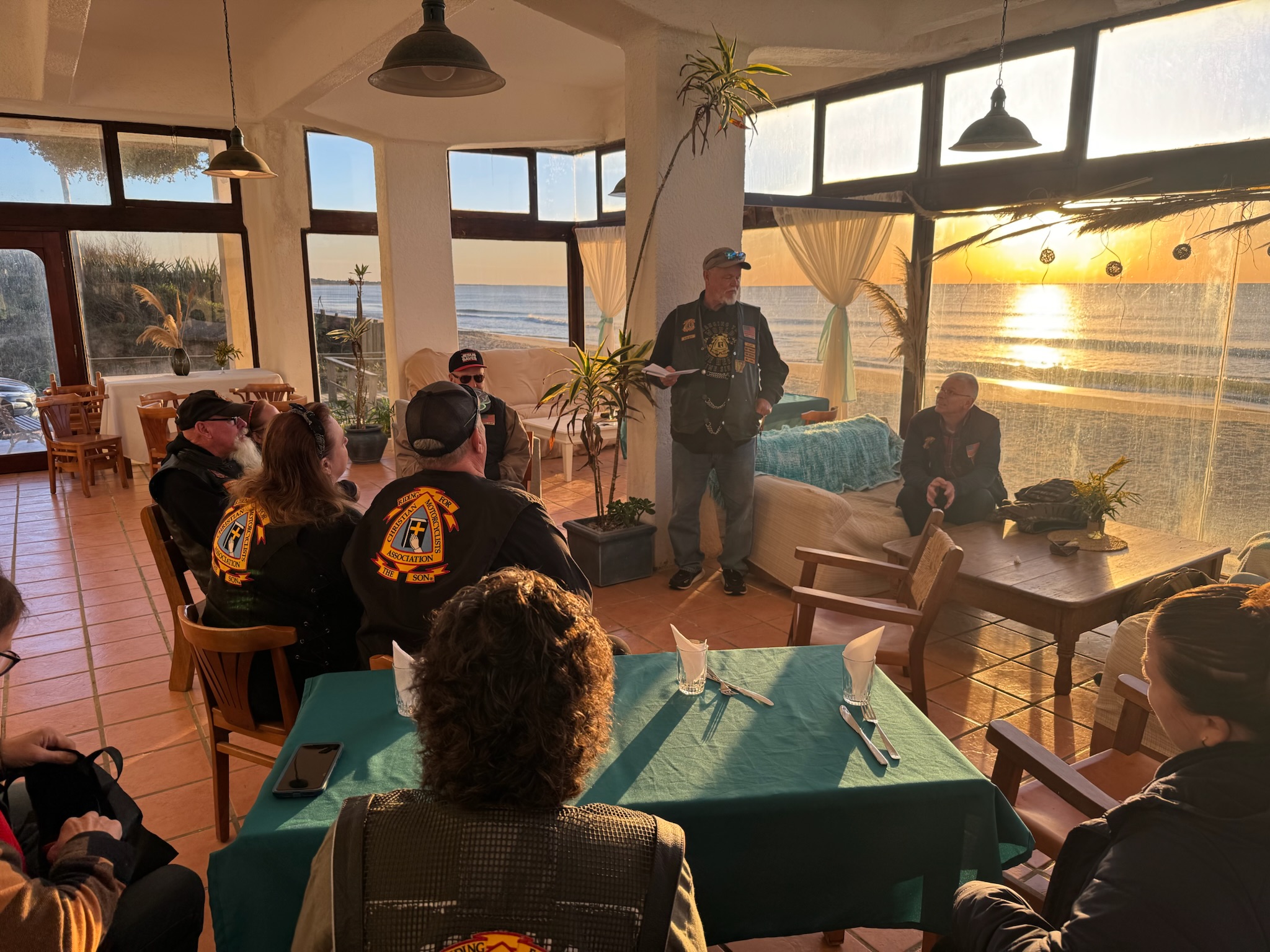 Morning devotions with a view of the sunrise.
