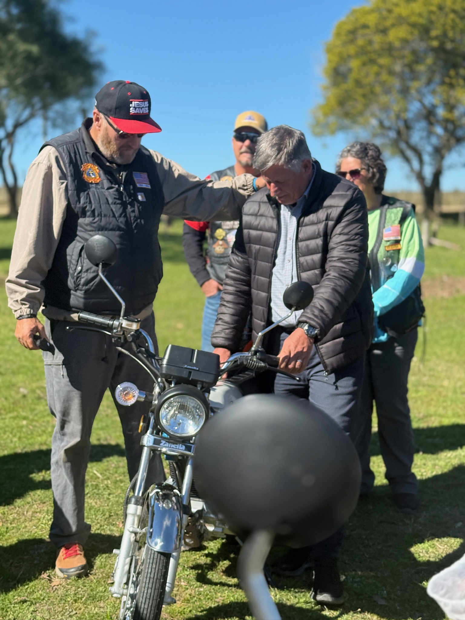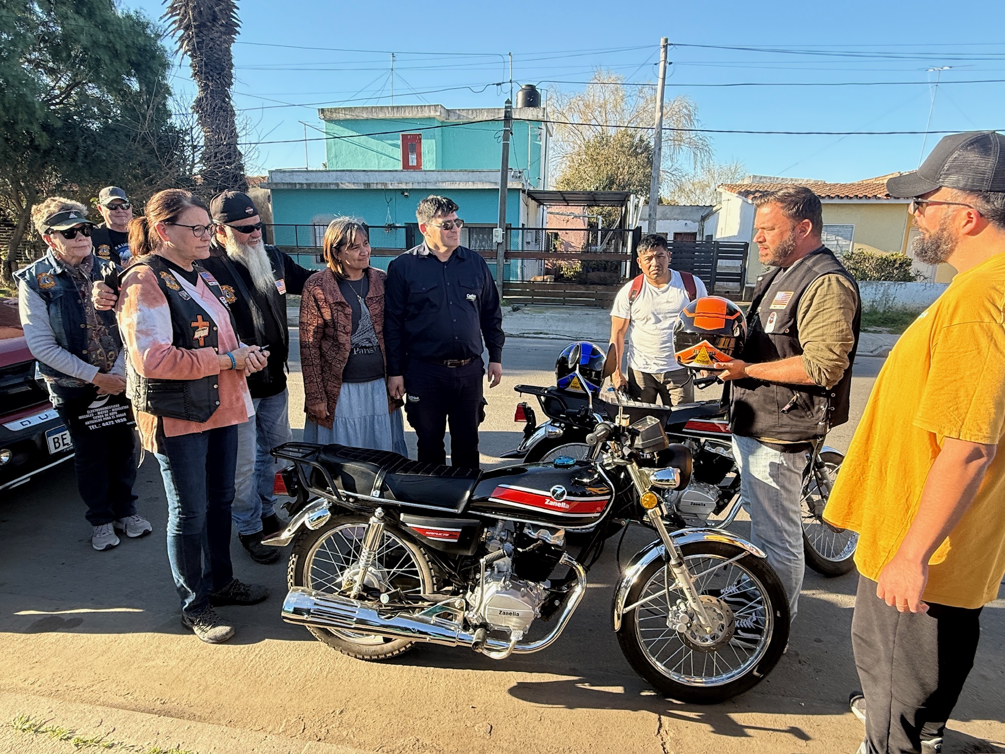 Pastors outside of Montevideo receive motorycles.